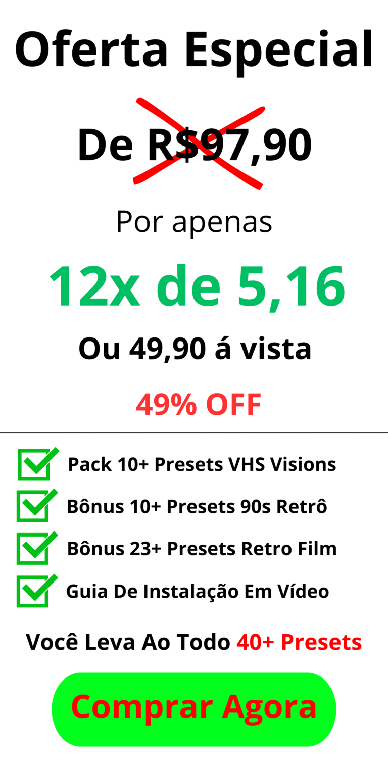 Garanta agora o Pack VHS Visions e transforme suas fotos em memórias nostálgicas com apenas 1 clique.